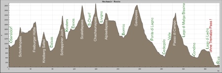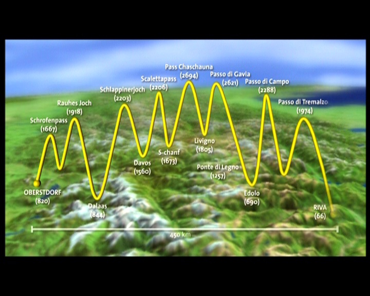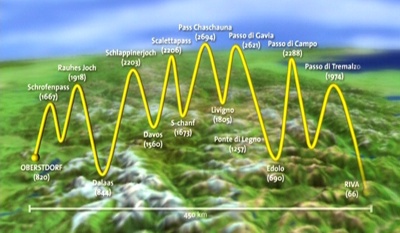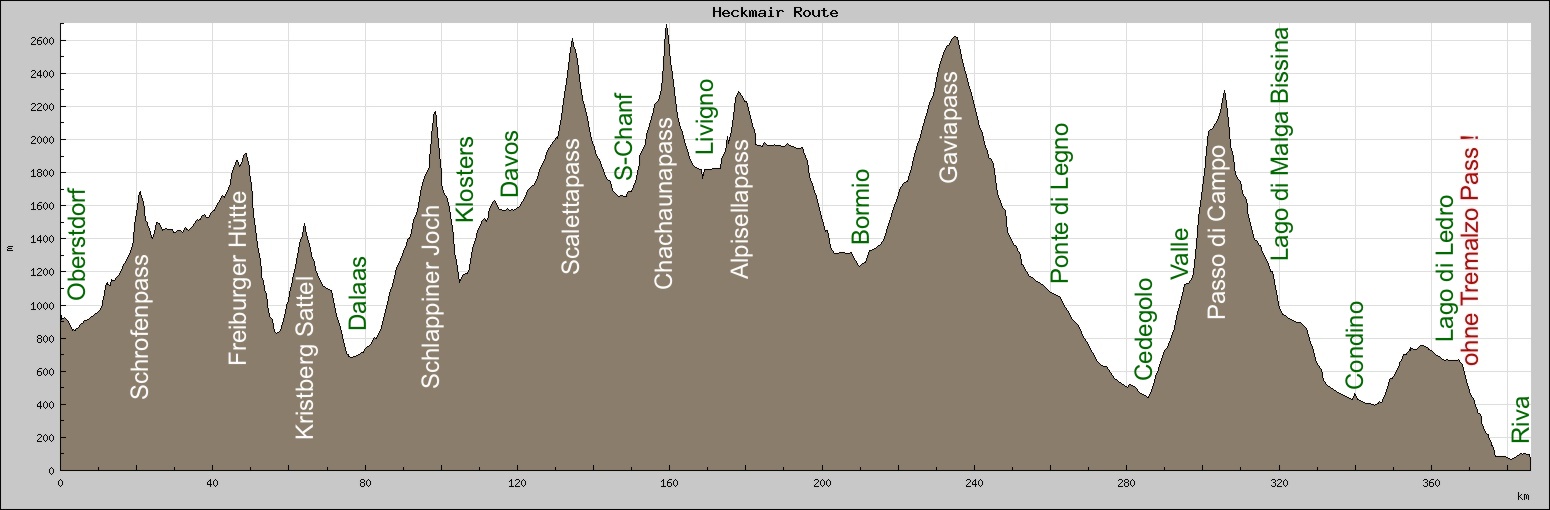 Per Klick auf die kleinen Vorschaugraphiken bekommt man die grosse Ansicht. Höhenprofil unserer Heckmair-Route (ohne Tremalzo) Bemerkung: Teilweise ist es wirklich so steil ;-)